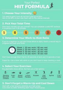 Here is a easy-to-follow formula to design your own basic HIIT workout! You can use this time and time again to build routines to keep it interesting and fun!