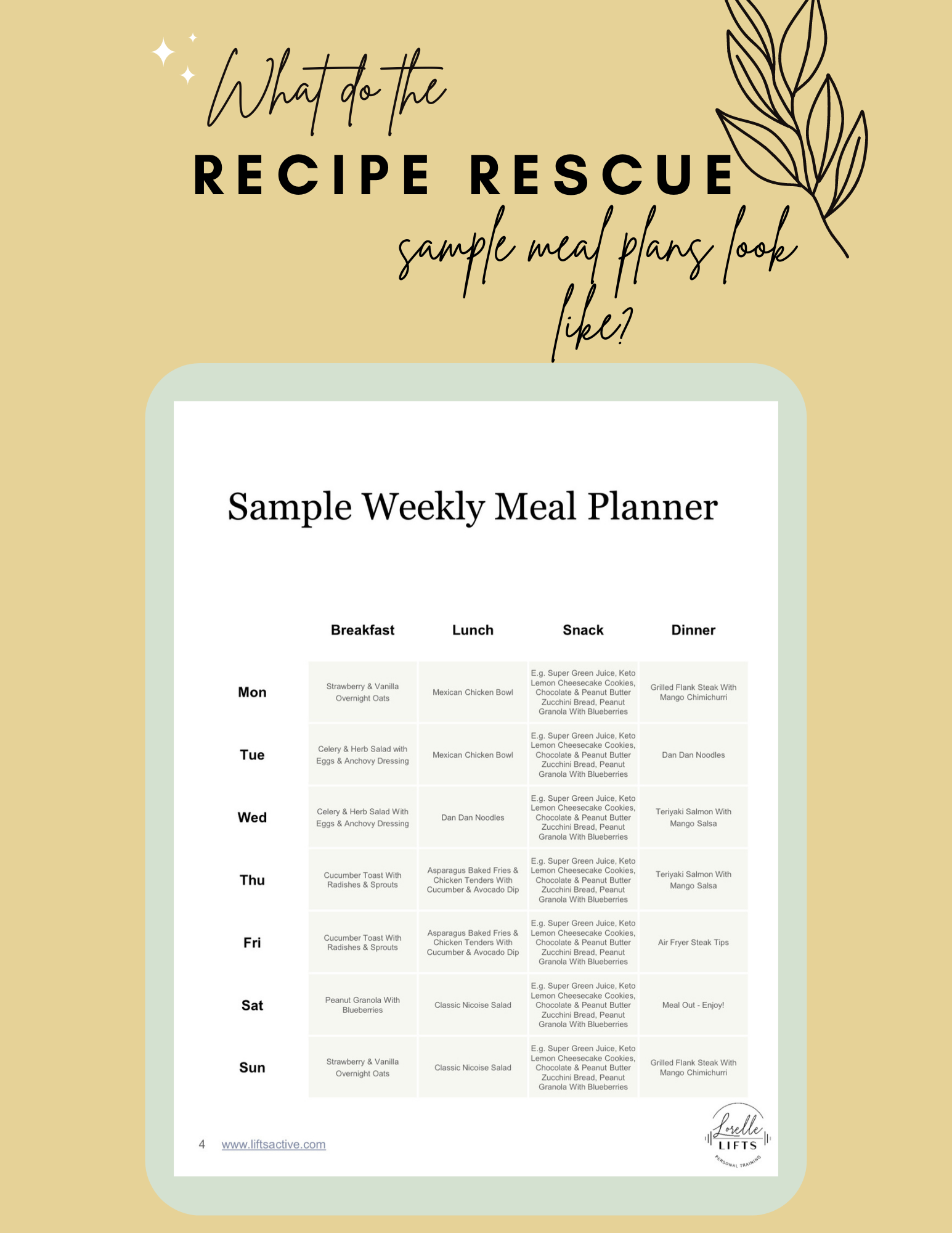 Have you ever felt overwhelmed with recipe planning? If you have…you’re not alone. Trying to stay on track with your goals, planning recipes, meal prepping, working out, etc. can be overwhelming. Let’s take one thing off your plate by having recipes waiting for YOU! Recipe rescue is here to do just that! RR is a contract-free monthly LL recipe service.